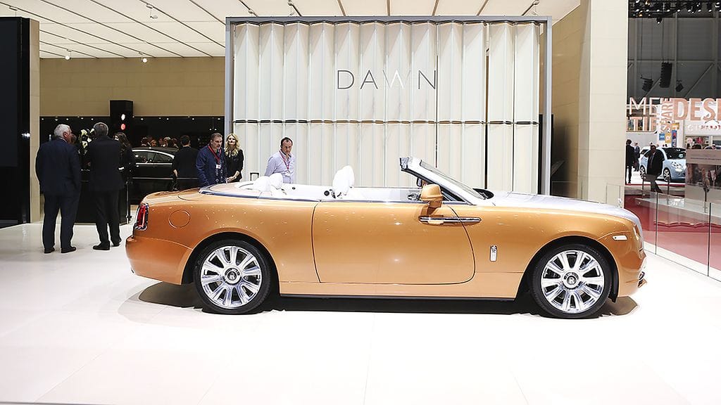 Dawn esiteltiin jo Frankfurtissa viime syksynä, mutta kaunista autoa jaksaa pitää pramilla useammassakin autonäyttelyssä. Rollsin osasto Genevessä kertoo myös kaiken oleellisen luksuksesta. Kun auton brändi on kohdallaan, pelkkä esillepano riittää. Auto ei tarvitse mainosvideoita tai mallityttöjä tuekseen. Suoralinjaisen auton muodot ovat ehtaa RR:ää, ja vaikka kyseessä on oikeastaan katoton Wraith, autoilla on oma ilmeensä. Ulkomuodossa yhteistä Wraithin kanssa ovat vain ovet ja takapuskurit. Pitkän konepellin alta löytyy 6,6-litrainen tuplaturbo-V12. Sen avulla päästään jahtiklubille riittävän ripeästi.