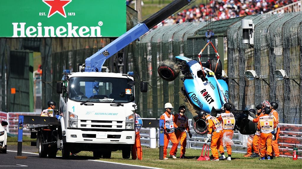 Williams-talli joutuu vaihtamaan Robert Kubican auton rungon Japanin GP:n alla puolalaiskuskin törmättyä seinään aika-ajoissa.
