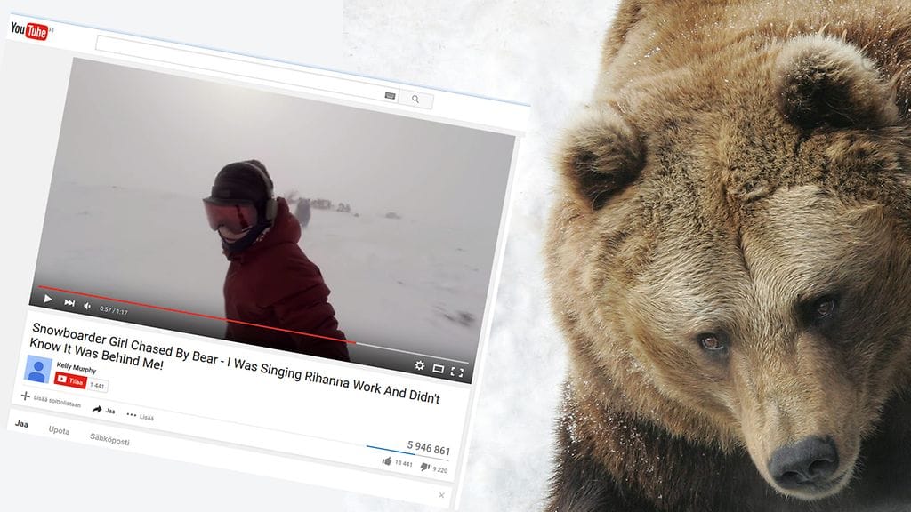 19-vuotiaan Kelly Murphyn lumilautailuvideo on järkyttävää katsottavaa. Murphy ei nimittäin ole lumisessa rinteessä yksin: hän laskettelee japanilaisen Hakuba 47 -hiihtokeskuksen rinteessä Rihannaa laulellen eikä huomaa karhua, joka jahtaa häntä mäkeä alas.