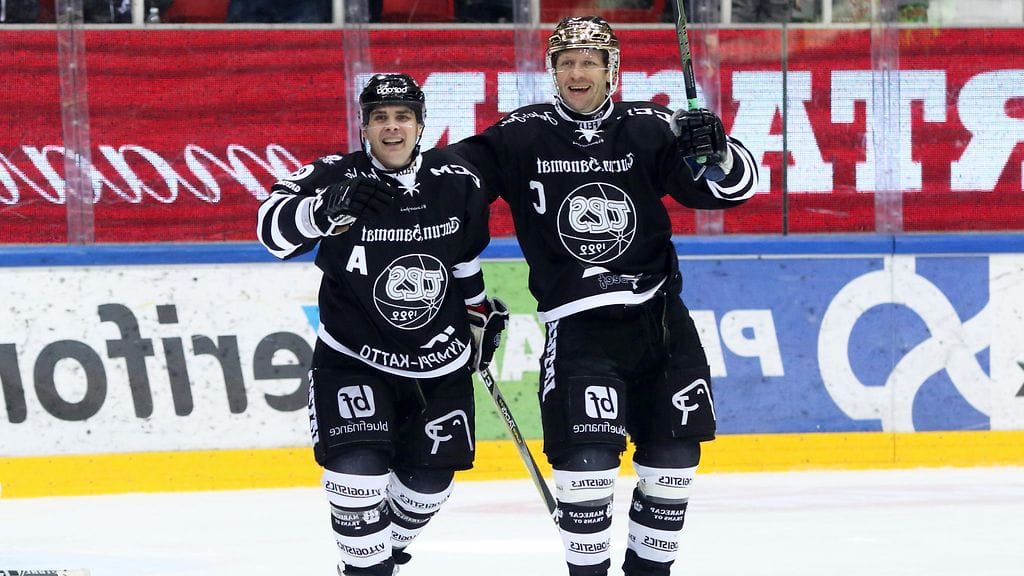 TPS-kapteeni Tomi Kallio oli syystäkin tyytyväinen joukkueensa otteisiin. TPS nousi voittonsa myötä Tapparan ohi runkosarjan kakkospaikalle.