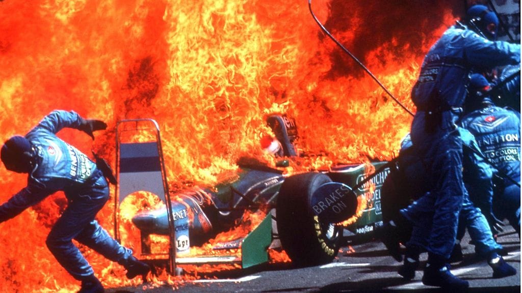 Kesällä Saksan GP:ssä Jos Verstappenin Benettonin räjähtäminen liekkeihin varikolla toi mieliin 12 vuotta aiemmin Riccardo Pallettin kuolemaan johtaneen tulipalon. Hollantilainen kuitenkin nousi autostaan lähes vahingoittumattoman. Hän selvisi turmasta vain avonaisen visiirin takia kasvoihin tulleilla lievillä palovammoilla.