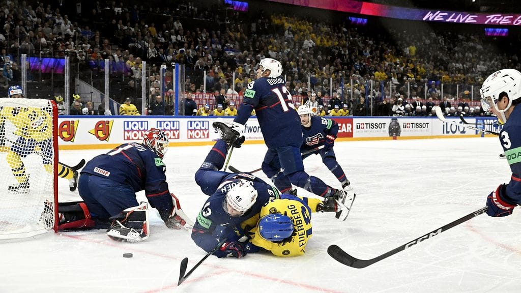 Yhdysvallat johtaa Ruotsia 3-1 kahden erän jälkeen jääkiekon MM-kisojen A-lohkon voiton ratkaisevassa ottelussa. Rikkonaista kohtaamista ovat värittäneet loukkaantumiset ja vihellysten jälkeiset sikailut.