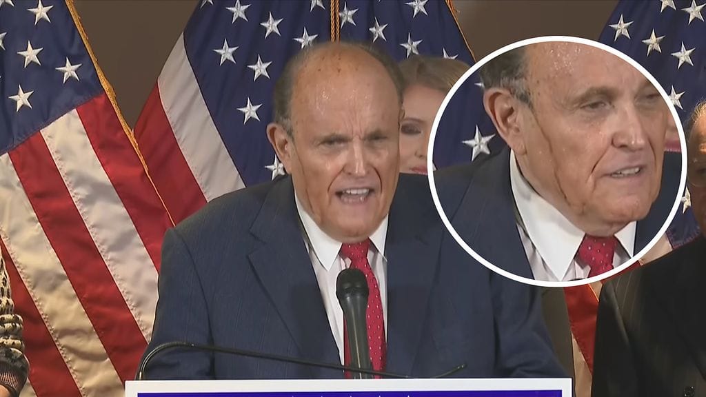 Yhdysvaltain istuva presidentti Donald Trumpin lakitiimi piti tiedotustilaisuuden Washingtonissa torstaina. Vaikka lakitiimin todistamattomat väitteet vaalivilpistä jatkuivat entiseen tapaan, katsojien huomio kiinnittyi Trumpin liittolaisen kasvoille ilmestyneisiin ruskeisiin vanoihin.