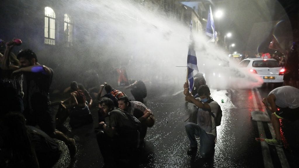 Israelin Jerusalemissa tuhannet protestoijat kerääntyivät tiistaina osoittamaan mieltänsä maan pääministeri Benjamin Netanjahun virka-asunnon ulkopuolelle, josta mielenosoittajat marssivat myöhemmin maan parlamentin Knessetin rakennuksen luokse.