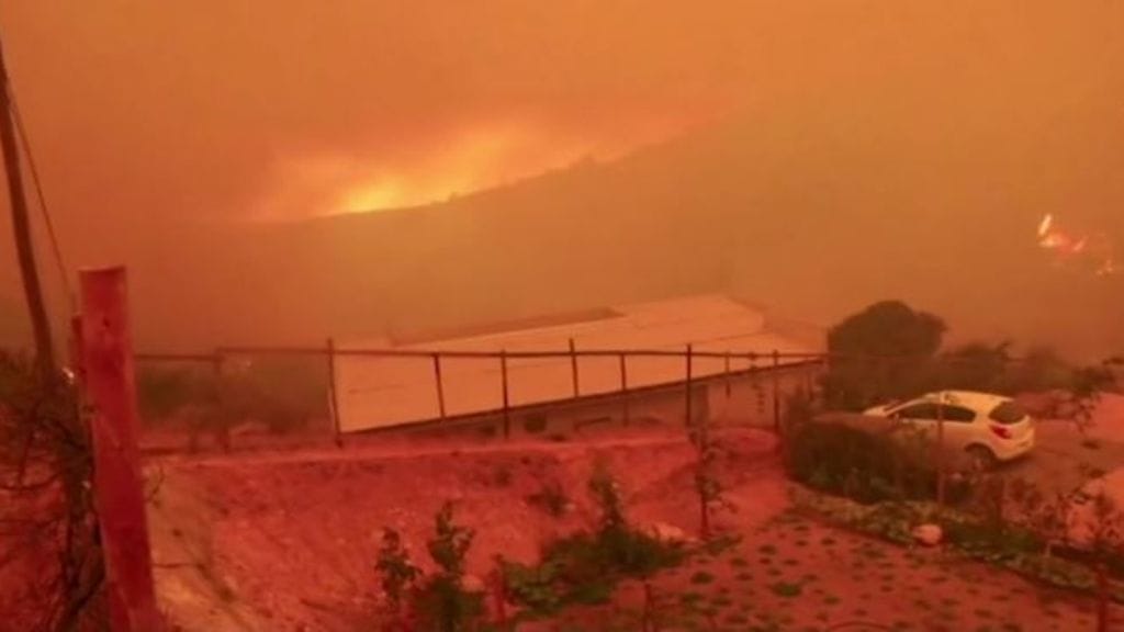 Videolla näkyy, kuinka perjantaina Chilen Valpraisonin alueella taivas värjäytyi punaiseksi maastopalon myötä.