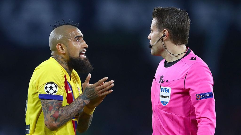 Barcelonan keskikenttäpelaaja Arturo Vidal sai punaisen kortin Napolia vastaan pelatun Mestarien liiga -ottelun viimeisillä minuuteilla.