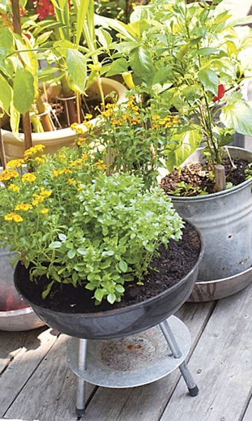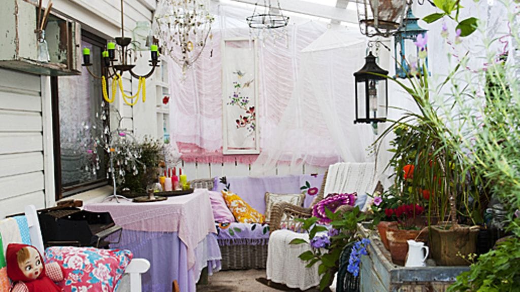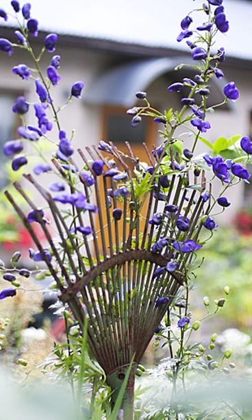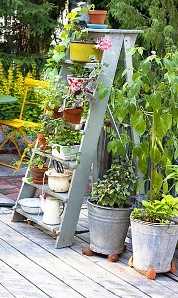 Vanhat tavarat ja tekstiilit voivat saada uuden elämän puutarhassa, luoden omaperäisen ja vanhanaikaisen tunnelman.