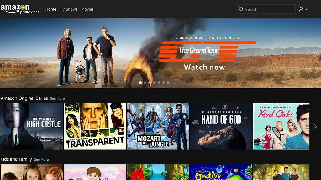 Amazonin videopalvelun valikoimaan kuuluu yksinoikeussarjoja sekä lukuisia muita tv-sarjoja ja elokuvia. Yksinoikeussarjoihin lukeutuu muun muassa The Grand Tour, jota on ladattu laittomasti verkosta enemmän kuin mitään muuta sarjaa koskaan.