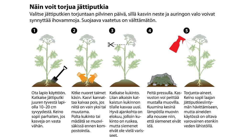 Jättiputket ovat karanneet Suomen luontoon puutarhoista.