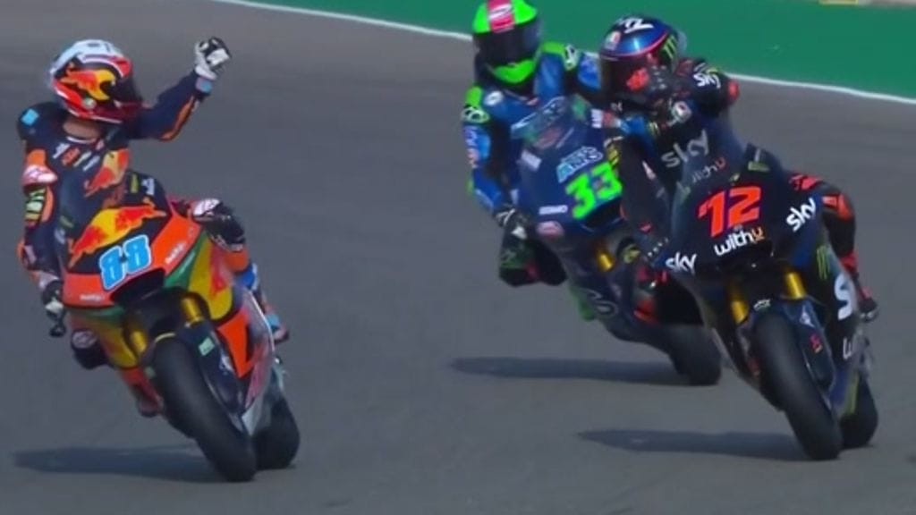 TV-kuvissa ei näkynyt tarkkaa syytä miksi kuljettajat kävivät niin kuumana toisilleen, mutta molemmat olivat varmasti pettyneitä aika-ajojen tulokseen. Martin oli aika-ajoissa vasta 12:s ja Bezzecchi 14:s.