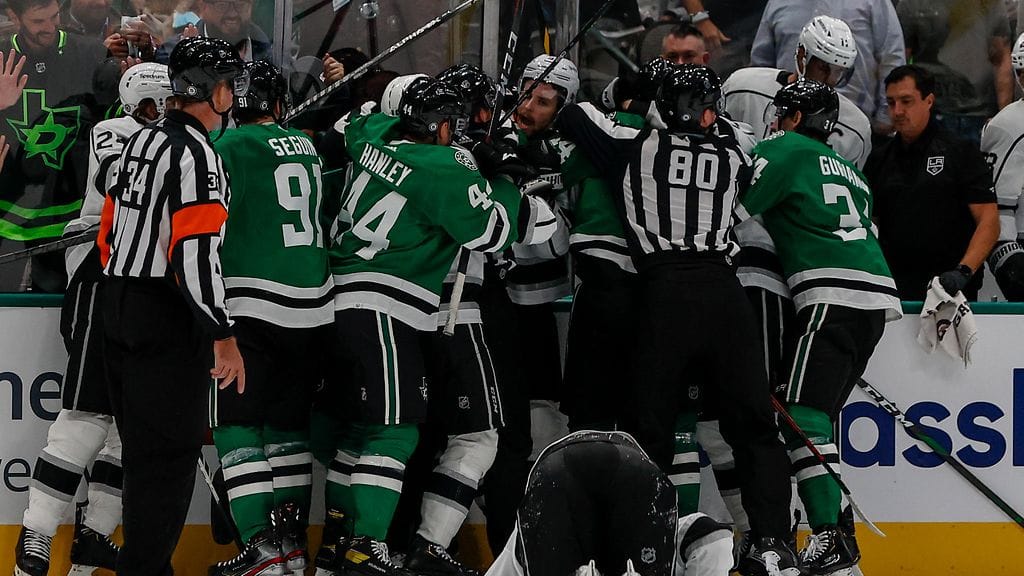 Dallas Starsin puolustaja Jani Hakanpää kolhaisi ikävällä tavalla Los Angeles Kingsin tähtipakkia Drew Doughtya polvellaan, ja kanadalainen joutui jättämään kaukalon kesken ottelun.