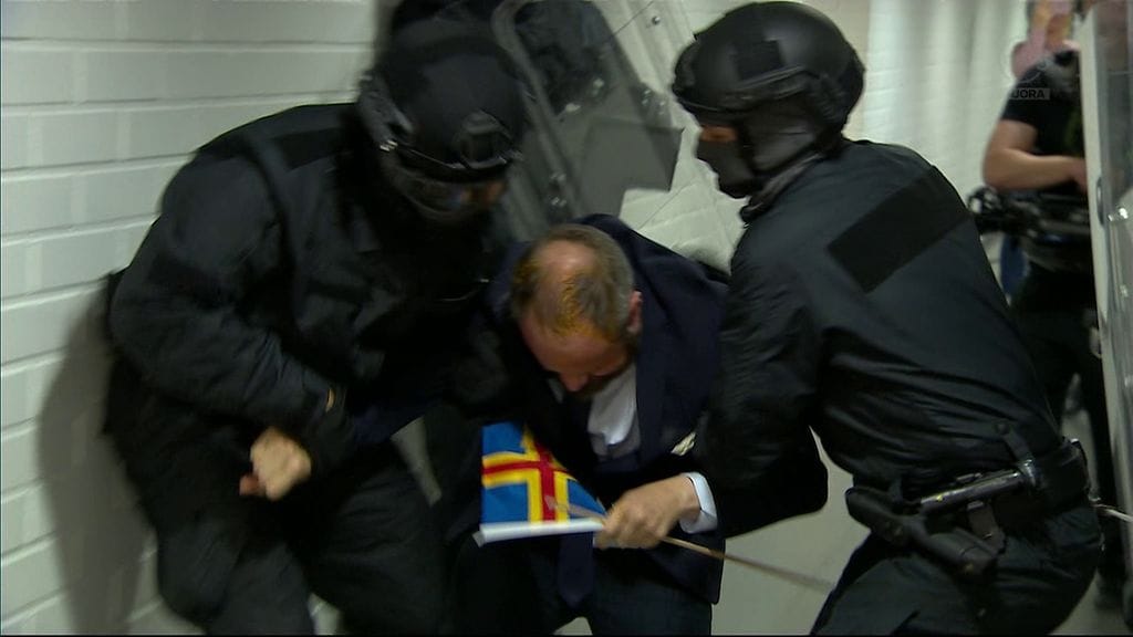 Tuomas Enbuske altisti itsensä mellakkapoliisin käsittelyllä illan EVS-lähetyksessä. Hän halusi demonstroida miltä tuntui katalonialaisista, joita poliisi yritti estää äänestämästä itsenäisyyden puolesta viime viikonloppuna.