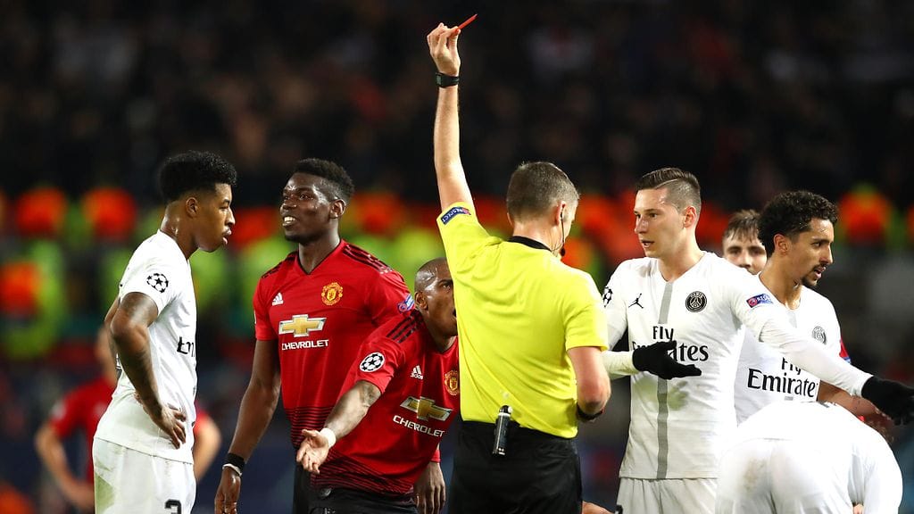 Pogba taklasi rumasti PSG:n Dani Alvesia polveen 90. minuutilla ja sai suihkukomennuksen toisen keltaisen kortin myötä. Samalla hän hölmöili itsensä ulos joukkueiden toisesta kohtaamisesta Pariisissa 6. maaliskuuta.