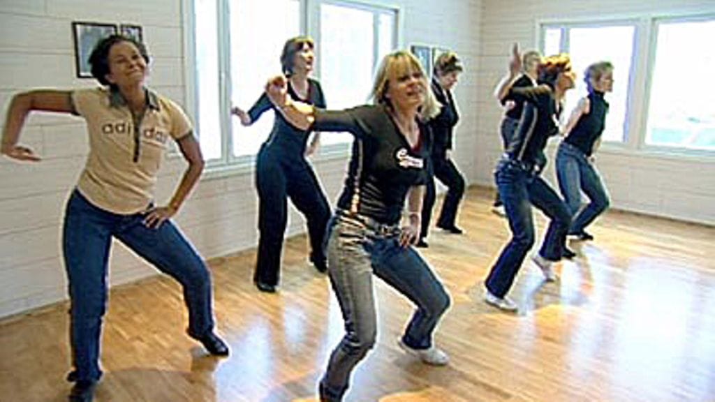 – Ja tuo lattia on aivan ihana, kun se hieroo jalkoja. Tanssisaliahan ei voi sijoittaa jokaiseen kotiin, mutta tuollainen seinässä oleva tanko toimisi hyvin metrin mittaisenakin, jolloin sen avulla on helppo jumpata, hän toteaa.