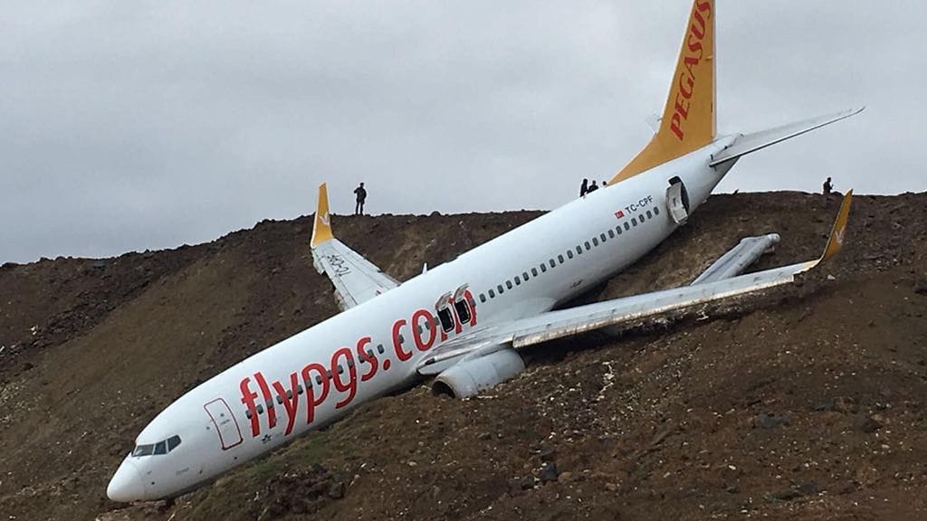 Laskeutumassa ollut kone suistui kiitoradalta ja pysähtyi vain muutaman metrin päähän Mustanmeren aalloista. Suistuminen tapahtui lauantaina Trabzonin kaupungissa Koillis-Turkissa.