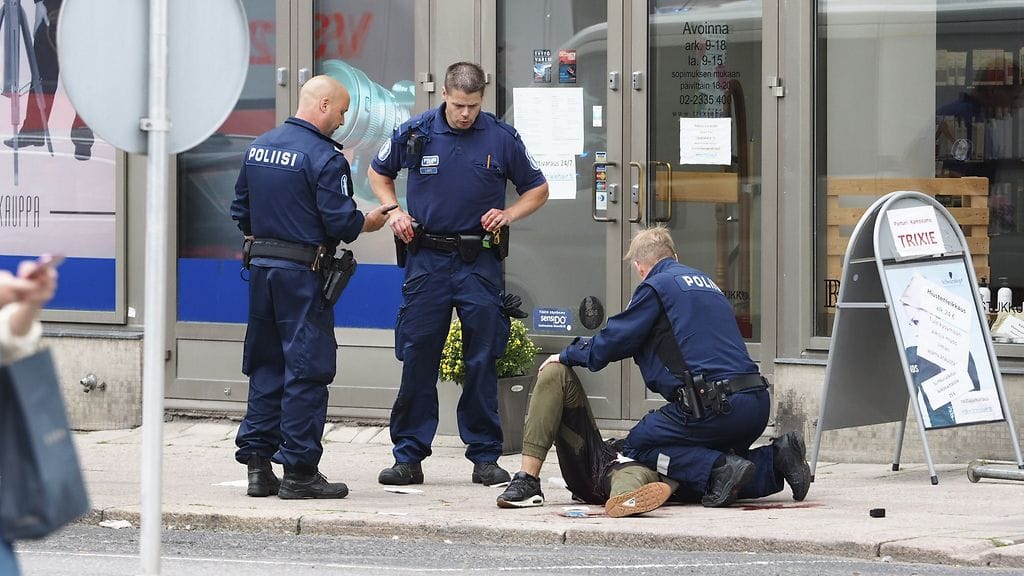 Pian joukko kuitenkin todisti tuttunsa tarttuneen veitseen. Osa näki, kun tämä puukotti ensimmäistä uhriaan, ja kaikki seurueesta näkivät hänen hyökkäävän naista auttaneen miehen kimppuun.