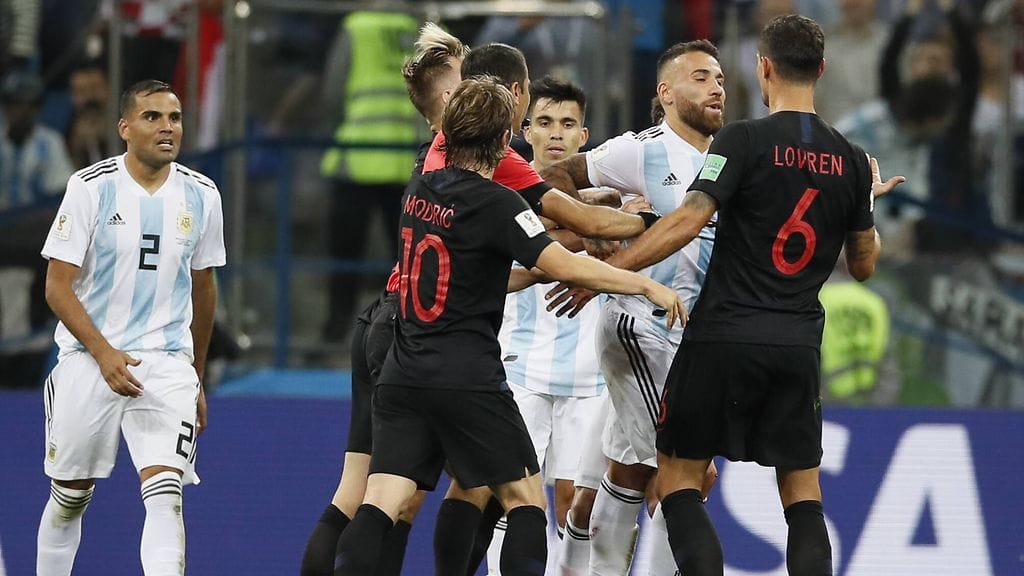 Argentiinan topparin Nicolás Otamendin tunteet läikkyivät yli jalkapallon MM-kisojen Kroatia-ottelun loppuminuuteilla.