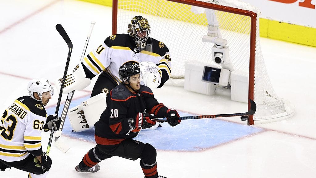 Boston Bruins nappasi voiton NHL:n pudotuspeleissä Carolina Hurricanesia vastaan, vaikka ykkösmaalivahti Tuukka Rask poistuikin joukkueen keskuudesta.
