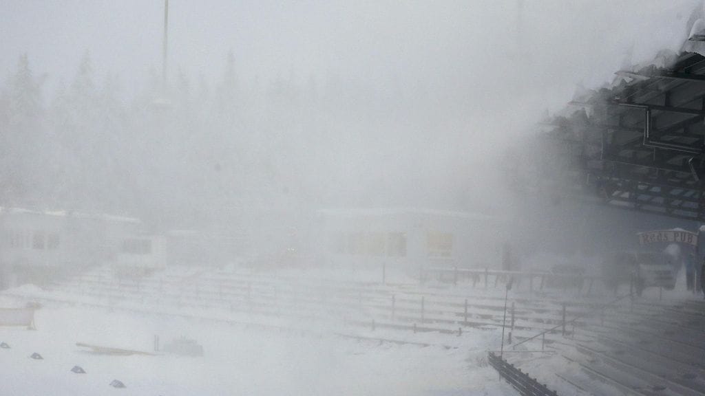 Tuuli tuiversi aamulla jo Ukonniemen hiihtostadionin ruokateltan "taivaan tuuliin".