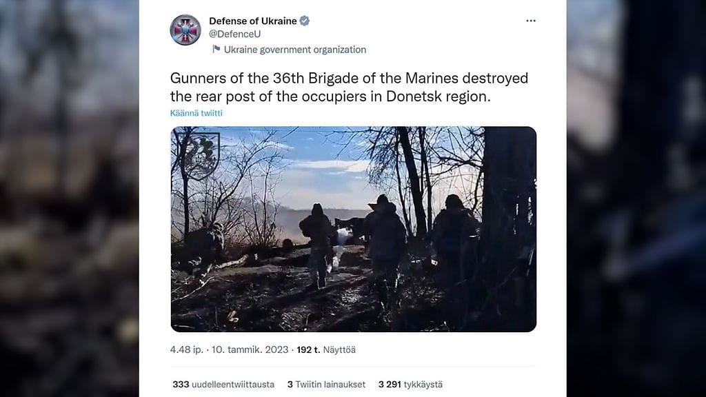 – Merijalkaväen 36. prikaatin tykkimiehet tuhosivat miehittäjien takavartioaseman Donetskin alueella, lukee Twitter-päivityksen saatetekstissä.