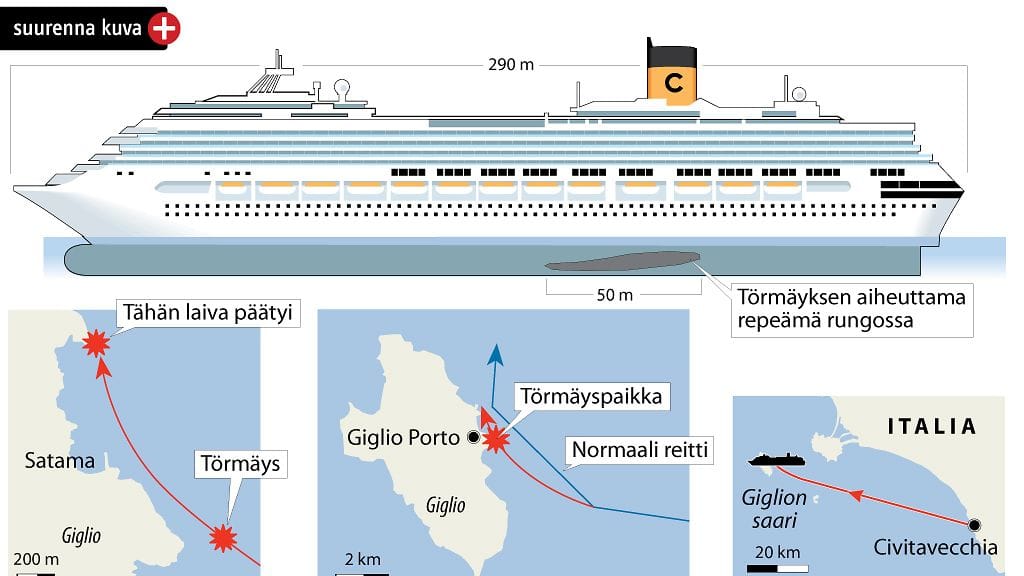 Italian laivaturman syyksi on nousemassa riskialtis ajotapa, jossa risteilyalus ajaa rannan läheltä näytöstarkoituksessa. Italialaisen Corriere della Seran mukaan kaikki laivan työntekijät eivät kuitenkaan olleet mukana päällystön esityksessä. Lehti kertoo, että kapteeni oli halunnut tehdä niin sanotun kunniakumarruksen laivan stuertin kunniaksi. Hän kun oli laivan henkilökunnasta ainoa, jonka kotisaari onnettomuuspaikan viereinen Giglion saari on.