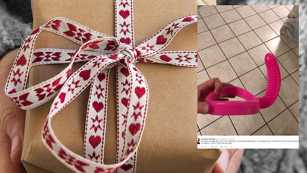Tytär jakoikin kuvan saamastaan lahjasta Twitterissä saatesanoin: "Äitini ojensi minulle lahjan, joten avasin sen. Huusin todella kovaa, koska luulin, että hän osti minulle dildon, mutta se olikin oikeasti Yeti-mukinpidike."