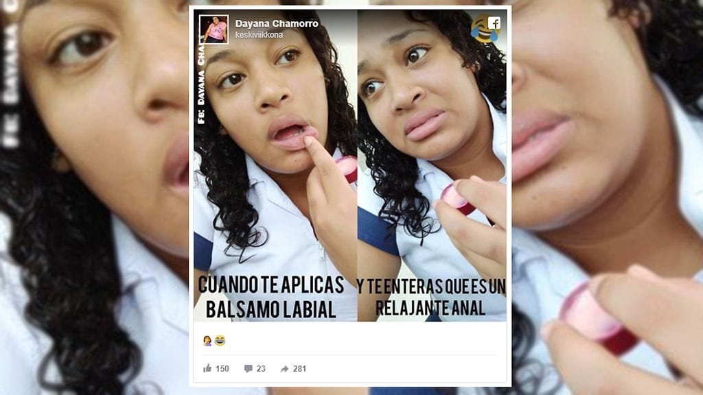 Hauska video, jossa kolumbialainen tyttö kertoo laittaneensa huuliinsa hiukan härskimpään tarkoitukseen hankittua voidetta, on kerännyt jo miljoonia katselukertoja Facebookissa.