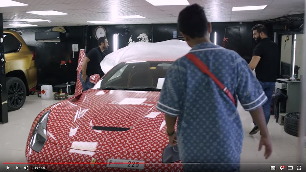 Vaikka Belhasa joutuu odottamaan vielä kolme vuotta saadakseen laillisesti ajaa, on hänen autotallinsa jo täynnä ökyautoja. Yksi näyttävimmistä autoista hänen kokoelmissaan on Louis Vuitton x Supreme -kuosiin puettu Ferrari F12 Berlinetta.
