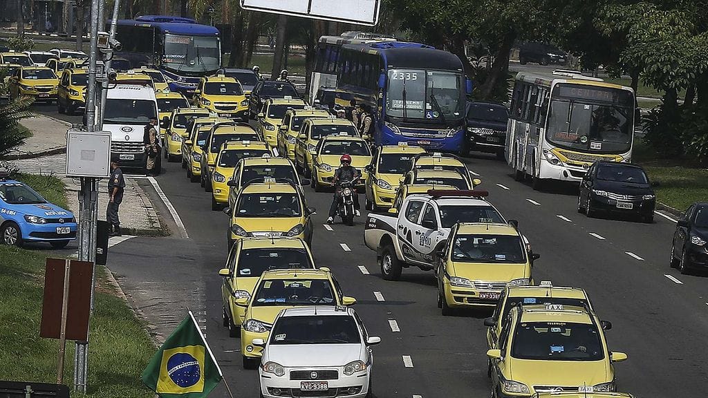 Sadat taksipalvelu Uberia vastustavat taksinkuljettajat tukkivat perjantaina Rio de Janeiron päätiet aiheuttaen liikennekaaoksen.