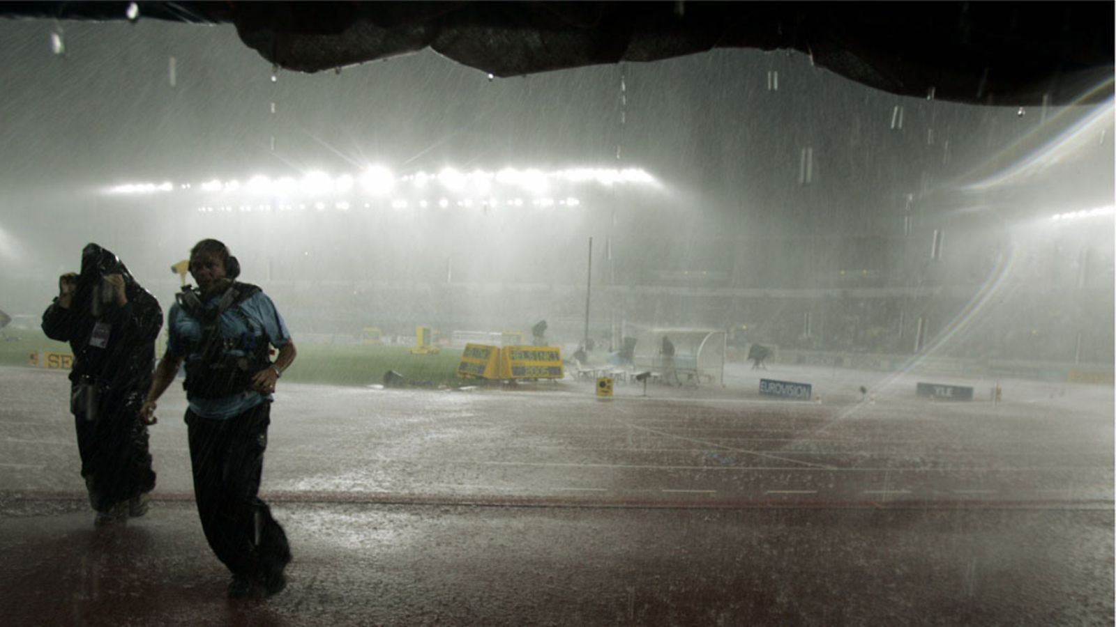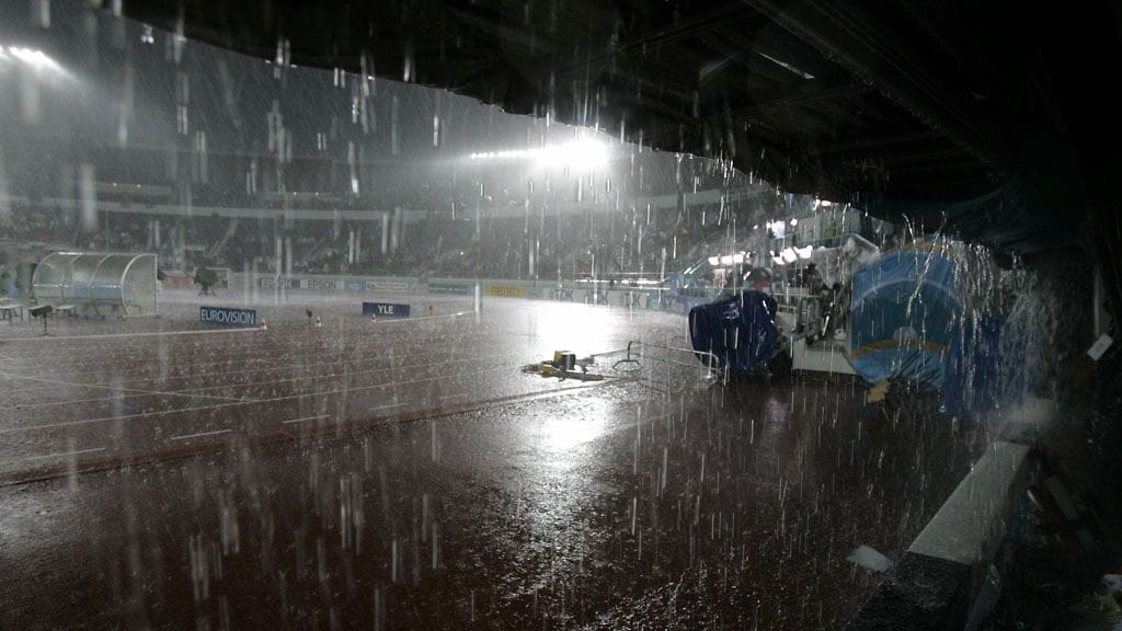 Helsingissä vuonna 2005 järjestetyt yleisurheilun MM-kisat muistetaan koitoksena, jotka testasivat sekä yleisön että urheilijoiden vedenkestävyyttä.Kisojen aikana nimittäin satoi aivan julmetusti.