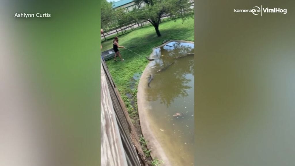 Sivulliset todistivat todellista jännitysnäytelmää, kun nainen uskaltautui alligaattoreiden lähelle.