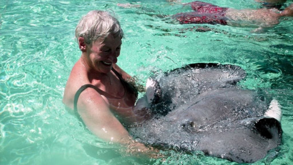 Muiden matkailijoiden snorklatessa ympärillä Tonyn huomio keskittyy 75-vuotiaaseen harmaahapsiseen rouvaan.