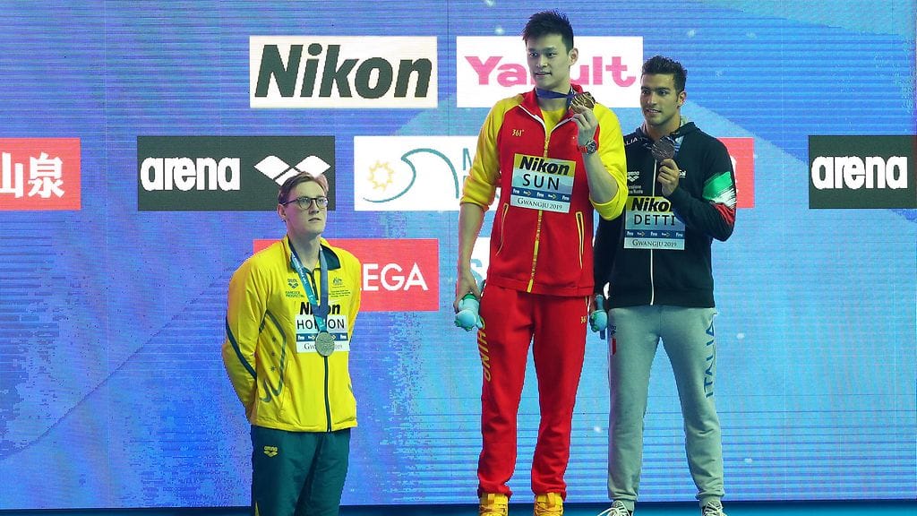 Näkyvimmin protestoi Australian Mack Horton, joka ei noussut Sunin rinnalle palkintopallille sunnuntaina miesten 400 metrin vapaauinnin palkintojenjaossa. Sun voitti matkan neljännen kerran peräkkäin, ja Horton oli hopealla.