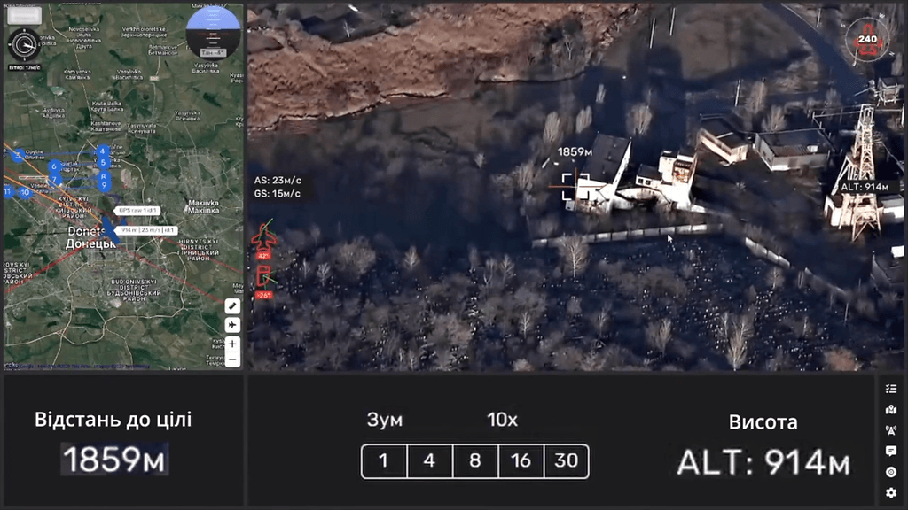 Donetskissa perjantaina kuvattu video havainnollistaa, kuinka tarkasti järjestelmä pystyy paikantamaan kohteita sekä tarkentamaan niihin etäältä taivaalta.