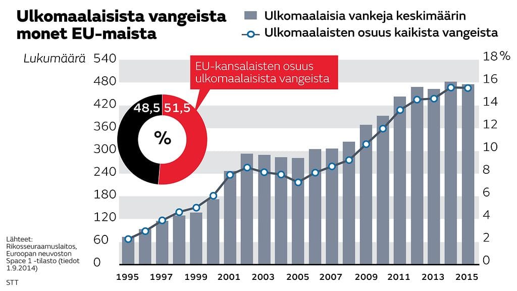 Suomen erikoispiirre on EU-kansalaisten iso edustus. Heitä on Euroopan neuvoston mukaan hieman yli puolet Suomen ulkomaalaisista vangeista, kun Euroopan keskiarvo on runsas kolmannes.