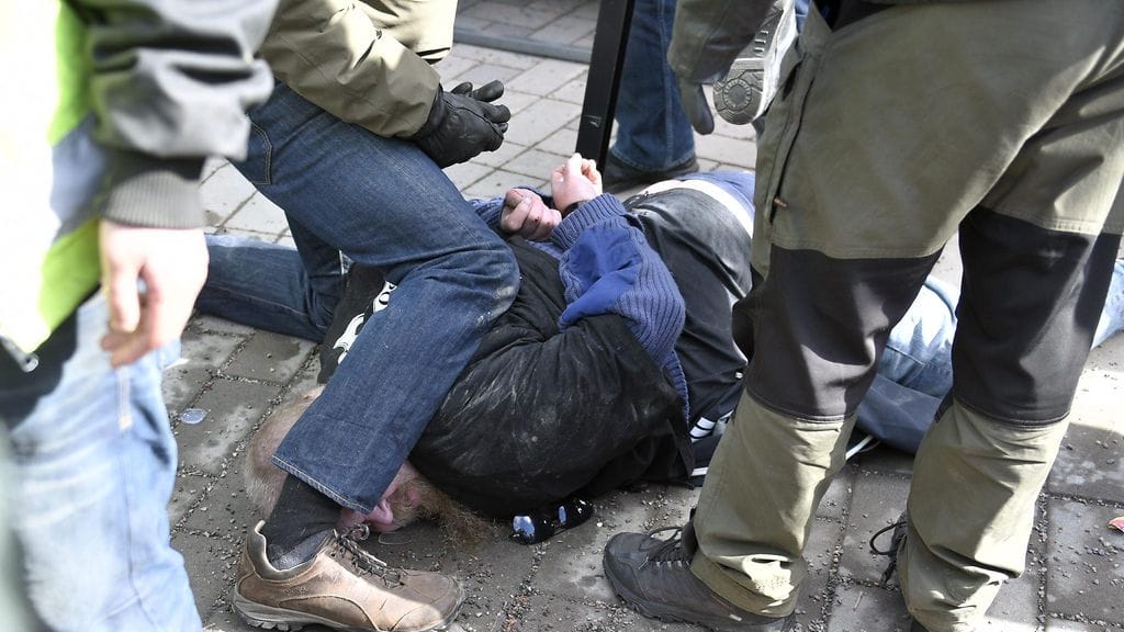 Soldiers of Odinin-tunnuksiin pukeutunut mies yritti lyödä ulkoministeri Timo Soinia (sin.) eilen päivällä Korson maalaismarkkinoilla Vantaalla. Soldiers of Odinin perustaja Mika Rannan mukaan mies ei ole ryhmän jäsen.