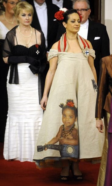 Toimittaja Umayya Abu-Hannan puku oli varmasti illan erikoisimpia.