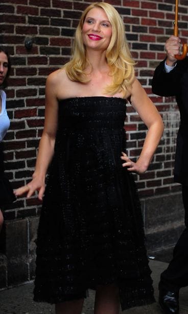 Alkusyksystä Danes vieraili David Lettermanin keskusteluohjelmassa niin ikään upeana. Mustaan olkaimettomaan leninkiin sonnustautunut näyttelijätär oli tuolloin edelleen raskaana.