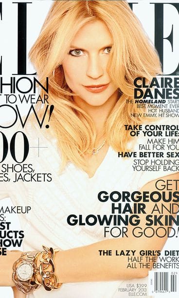 Claire Danes, 33, poseeraa helmikuun 2013 Elle-lehden kansikuvassa häikäisevän kauniina. Nainen toivotti tervetulleeksi esikoispoikansa maailmaan 17. joulukuuta 2012.