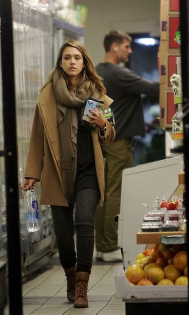 Jessica Alba näyttää hyvältä, vaikka olisi pelkästään käymässä ruokakaupassa.
