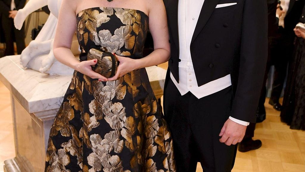 Kansanedustaja Maria Guzenina asteli Presidentinlinnaan yhdessä puolisonsa Kari Mokkon kanssa. Guzenina säteili olkaimettomassa mustassa mekossa, jossa oli pronssinvärisiä kukkia.