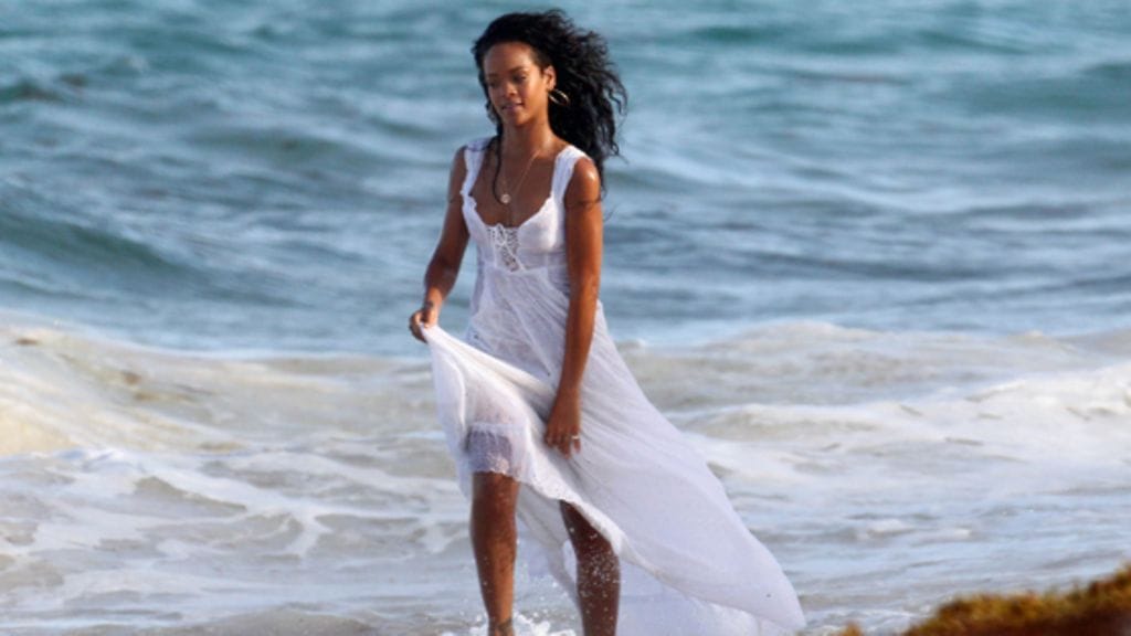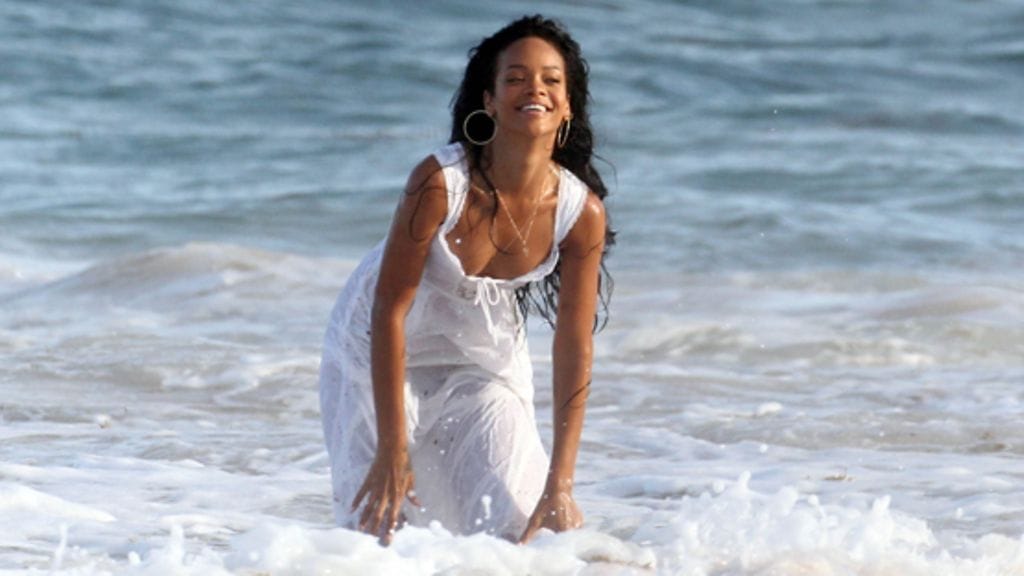 Kaunis Rihanna kuvasi Barbadoksella uutta matkailuvideota avittamaan maan turismia. Saarella syntynyt laulaja poseerasi kuvaajille aaltojen keskellä. 24-vuotias Rihanna oli pukeutunut pitkiin, kesäisiin mekkoihin ja näytti nauttivan olostaan.