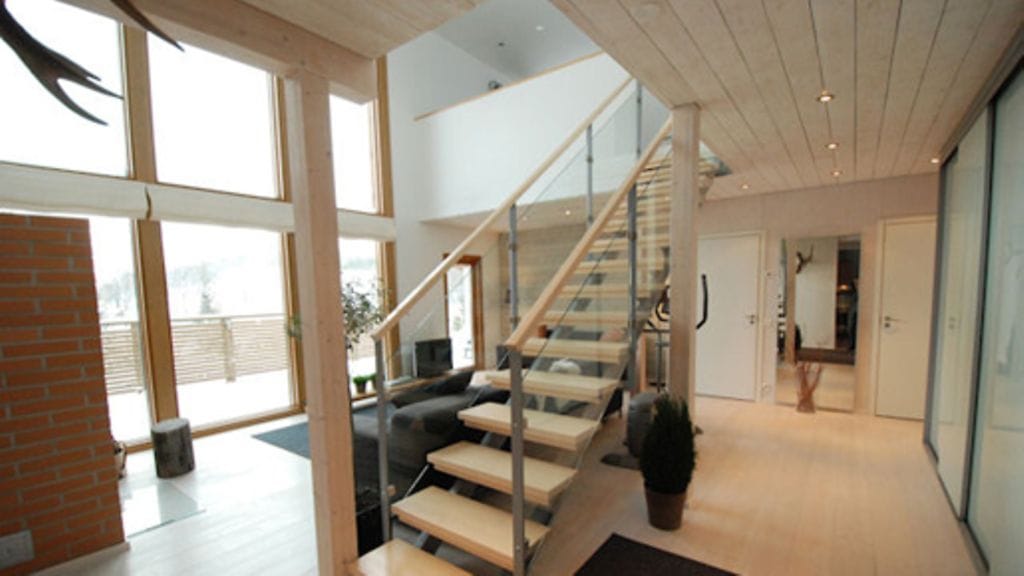 Rauhallisella alueella Nurmijärven Klaukkalassa sijaitseva omatkotitalo on valoisa ja avara. Olohuoneen huonekorkeus on lähes kuusi metriä, ja päivänvalo tulvii sisään kattoon asti ulottuvista ikkunoista. Talon kokonaispinta-ala on 181 m², josta asuinpinta-alaa on 142 neliömetrin verran.