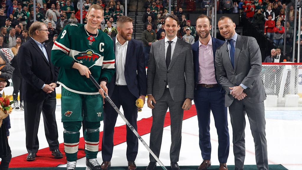 1 000 NHL-ottelun rajan hiljattain rikkonut Minnesota Wild -kapteeni Mikko Koivun hienoa saavutusta juhlittiin tiistaina upealla tavalla. Koivua odotti jopa iloinen yllätys, kun vanhat pelitoverit saapuivat seremoniaan.