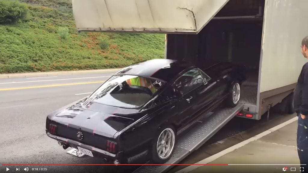 Tällä videolla aivan upeaa vuoden 1965 Mustia ollaan ajamassa trailerille, kun jostain erikoisesta syystä auto kieltäytyy menemästä ramppia ylös. Auton keula on jo siististi sisällä, kun takapää päättää heittää kapuloita rattaisiin.
