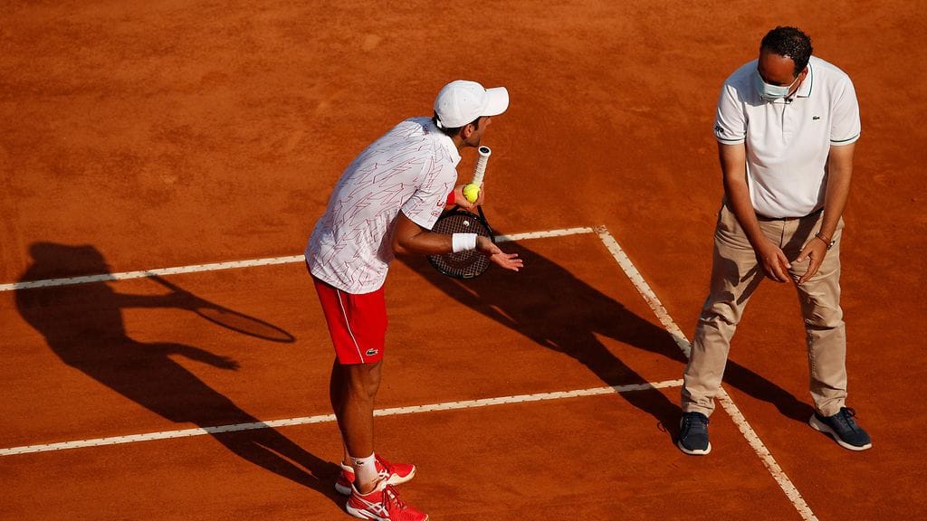 Tennistähti Novak Djokovic on joutunut jälleen hankaluuksiin tuomarien kanssa Rooman Masters-turnauksessa. Turnaus on Djokovicille ensimmäinen sitten Yhdysvaltojen avoimen, jossa hän tuli diskatuksi lyötyään pallon päin rajatuomaria.