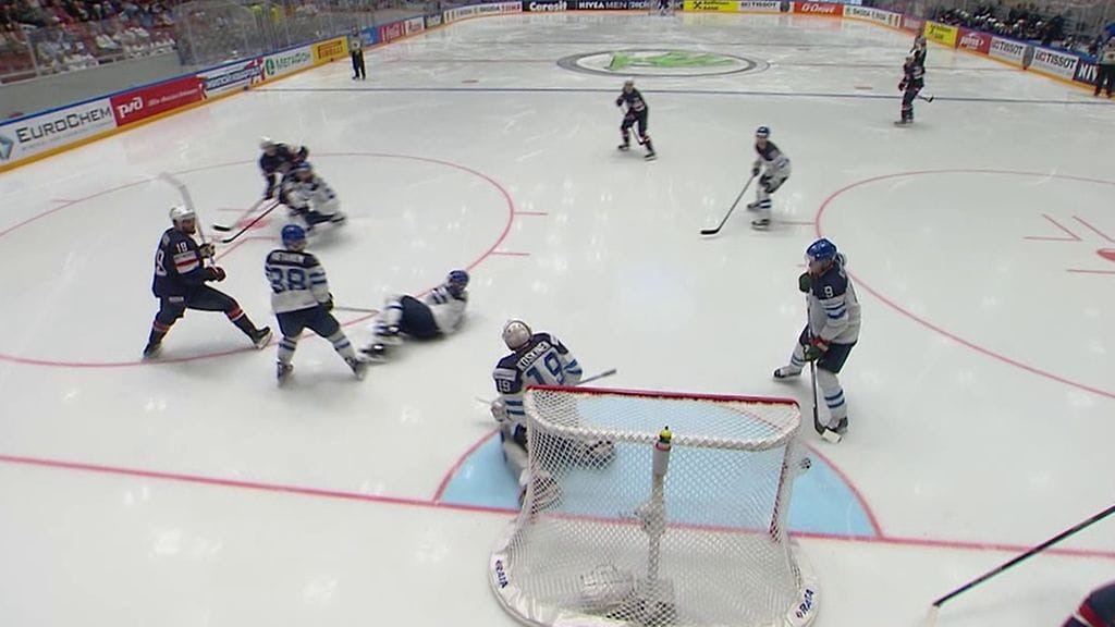 USA nousi päätöserän alussa 2-2-tasalukemiin, kun amerikkalaiset ryöstivät kiekon Sebastian Aholta. Puolustaja Juuso Hietanen oli sen jälkeen maalin takana pahoissa ongelmissa Patrick Maroonin kanssa.