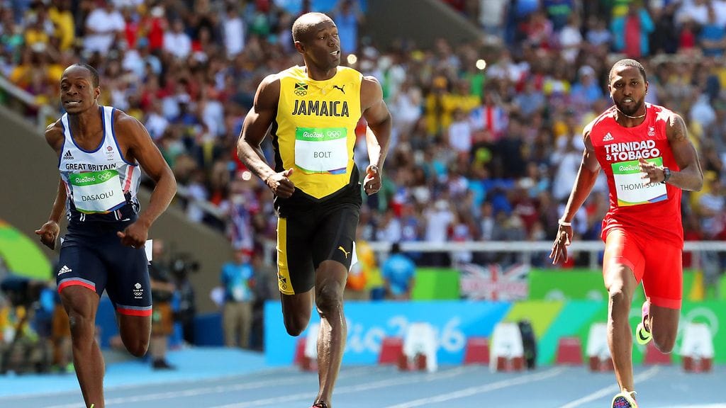 Bolt juoksi leikitellen alkuerässään ajan 10,07. Kun muut kilpailijat pinkoivat sen minkä pystyivät, Boltilla oli juoksunsa aikana aikaa vilkuilla sivuilleen eränsä ykköspaikkansa varmistamiseksi.