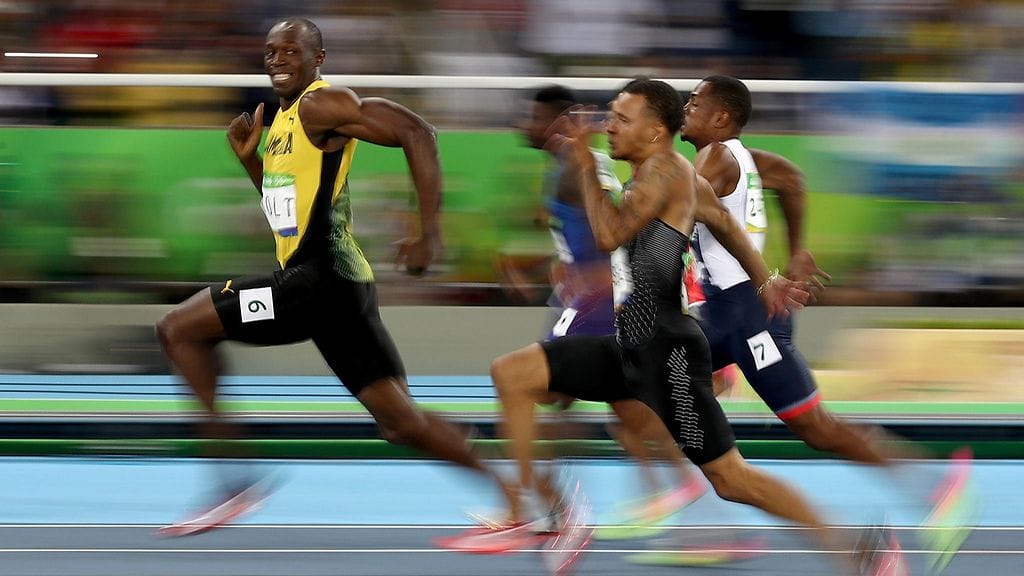 Spencer sai ikuistettua 100 metrin kisasta kuvan, jossa tuleva kultamitalisti Usain Bolt näyttää poseeraavan kesken juoksun. Kuvan huipentaa jamaikalaistähden leveä virne - Bolt näyttää ottavan tulevasta voitostaan jo kesken juoksun kaiken ilon irti.