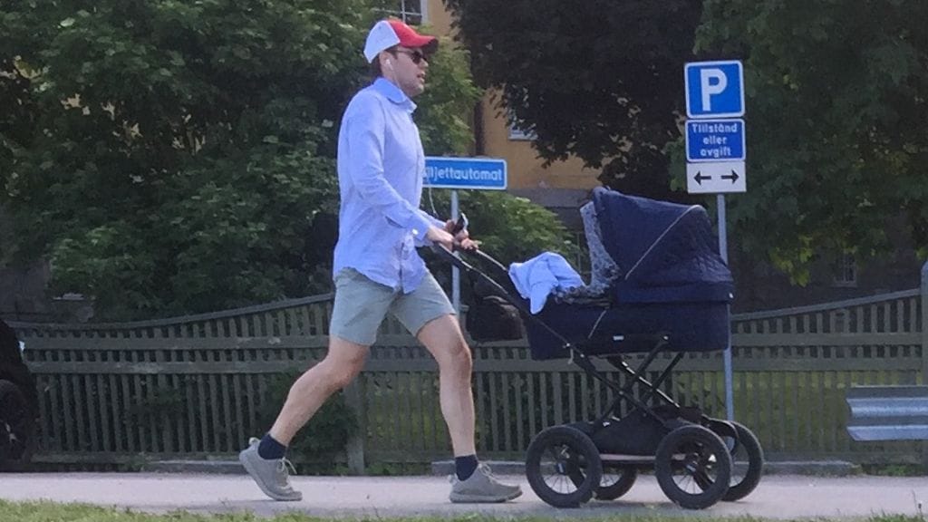 Kruununprinsessa Victorian puoliso prinssi Daniel nautti kesäisestä päivästä kävelylenkillä. Rattaissa pötkötti mitä todennäköisimmin parin kuopus, maaliskuun alussa syntynyt prinssi Oscar.